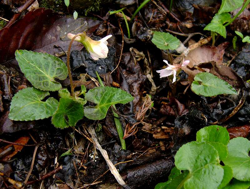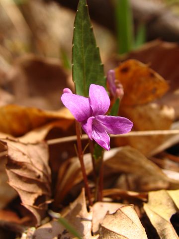 NYANさん、お手数をおかけします。 やはりヒカゲですよね。 こちらで見かけるヒカゲは添付したこんな姿勢がほとんどです。 緑葉の物はほとんどありません。 ポイントはヒナスミレの近くだけ(ヒナと日陰の混生場所)緑の葉のこんな丸みを帯びたヒカゲスミレが局所的にありました他はすべて茶のよれた感じの葉でした。 それと株の大きさが周りのヒカゲより小さい姿勢だったので思わず先入観から先走ってしまいました。 この場所は不思議でイブキ、タチツボ、マルバ、ヒカゲ、オトメ ヒナスミレ、アオイスミレが同時に咲いていました50m四方の雑木と赤松の混在している河川敷です。 やはり私みたいな素人はこれ以上考えない方が良いですね! そうじゃないのかなーの浪漫がスミレ探しの醍醐味かもしれません。