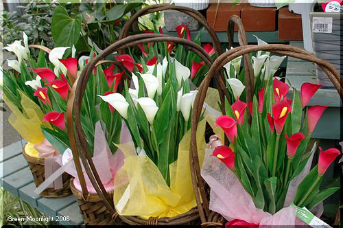 サトイモ科い特徴的な仏炎苞がクッキリとして、とても美しいイメージです。 「これは何かな?」 カイウ(海芋)とも呼ぶそうですが、カラーという名前が一般化していますね。 別名のアエティオピカは主要な属(オランダカイウ属)の名前です。 でも、下欄のような幾つかの属で構成されていると考えた方が良さそうです。 現在まで、8つの属が確認されているそうです。 元来はミズバショウのような湿地性植物です。 鉢植えで育てるには、それなりの工夫が必要かも知れませんね。 葉にも多彩な変化があって、鑑賞価値があると思います。 (ちょろっと、蘊蓄) ● 学名 : "Zantedeschia aethiopica" (オランダカイウ) ● "Zantedeschia elliottiana" (キバナカイウ) ● "Zantedeschia rehmannii" (モモイロカイウ) ● 原産 : 南アフリカ ● 分類 : サトイモ科オランダカイウ属 仏炎苞(仏焔苞)は花序を保護するために発達した変態葉です。 これが特別に大きな組織として発達したがサトイミ科でしょう。 内側にある棒状の花序をジックリ見ますと、これはこれで愛嬌があります。 カラーは色(color)でも、襟(collar)でもなく、美(calla、ギリシャ語由来)です。 実のところ、長い間、襟だと思っていました。 学生服の詰め襟カラー(服飾付属品)をイメージさせますよね (^.^) 。 ウェディングブーケやフラワーアレンジメントに利用される人気者です。 ナイル川に多く生育して「ナイルのユリ(lily of the Nile)」と呼ばれるとか。 なかなか趣がありますねぇ。