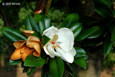 別名:ハクレンボク、日本ではホソバタイサンボク(M. grandiflora var. laceolata)が多く栽培されているという。 |