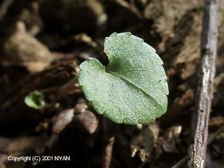 マルバスミレの芽です。くるっと丸まって出てきていますね。葉の形そのものは、花の時期のものと大きく変わらないように見えます。