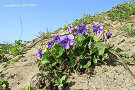 アレッ、タチツボスミレかな!?でも、花がかなり大きくて、第一、こんな海岸の砂地に生育するかな?茎の立ち上がり具合が違う、葉もしっかりしている。もしかしたら、イソスミレだったりして…。わぁ、株がこんもりとまとまっている。