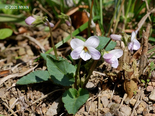 交雑親 コスミレ ( 2n=48 )Viola japonica Langsdorff ex Gingins ノジスミレ ( 2n=24 )Viola yedoensis Makino 学名 Viola x 'Mihasi' Viola japonica Langsdorff ex Gingins x V. yedoensis Makino 花の特徴 形状 中輪。側弁は有毛。 色 淡紫色から紫色。唇弁に紫条が入る。花色に変化があり、かなり白っぽい型が流通している。 距 淡紫色で円筒形。 花期 4月中旬~5月上旬。 花柱 虫頭形。 芳香 なし。 補足 顎の付属体は全縁。 葉の特徴 形状 卵状披針形。小さい翼 が見られる。 色 両面が緑色で、微毛が少し生える。 補足 根の特徴 太い直根。垂直に長く伸び、白く細い根が多く出る。*(出典:N004) 絶滅危惧情報 基準標本 参考情報 長野県(RH:希少雑種) その他 小沢進氏が埼玉県大宮市三橋(当時)で見出したとされる。