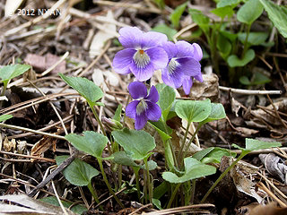 根生葉はニオイタチツボスミレに近い心臓形から卵状心臓形。 茎生葉はナガバノタチツボスミレに近い長三角形、三角状披針形 とされる。ただし、そういう場合が多いという意味合いであり、観察した限り、分離する。 |