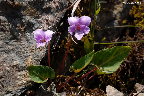 高知県と愛媛県の県境に位置する高い山々は植物の宝庫と言えそうです。ただ標高が1,600m近辺になると森林限界を超え、むき出しの岩が目立つようになります。そんな岩の隙間にシハイスミレが咲いていました。主な生育環境である「山地の乾燥した明るい場所」には違いありませんが、快適かどうかは分かりかねます(笑)。